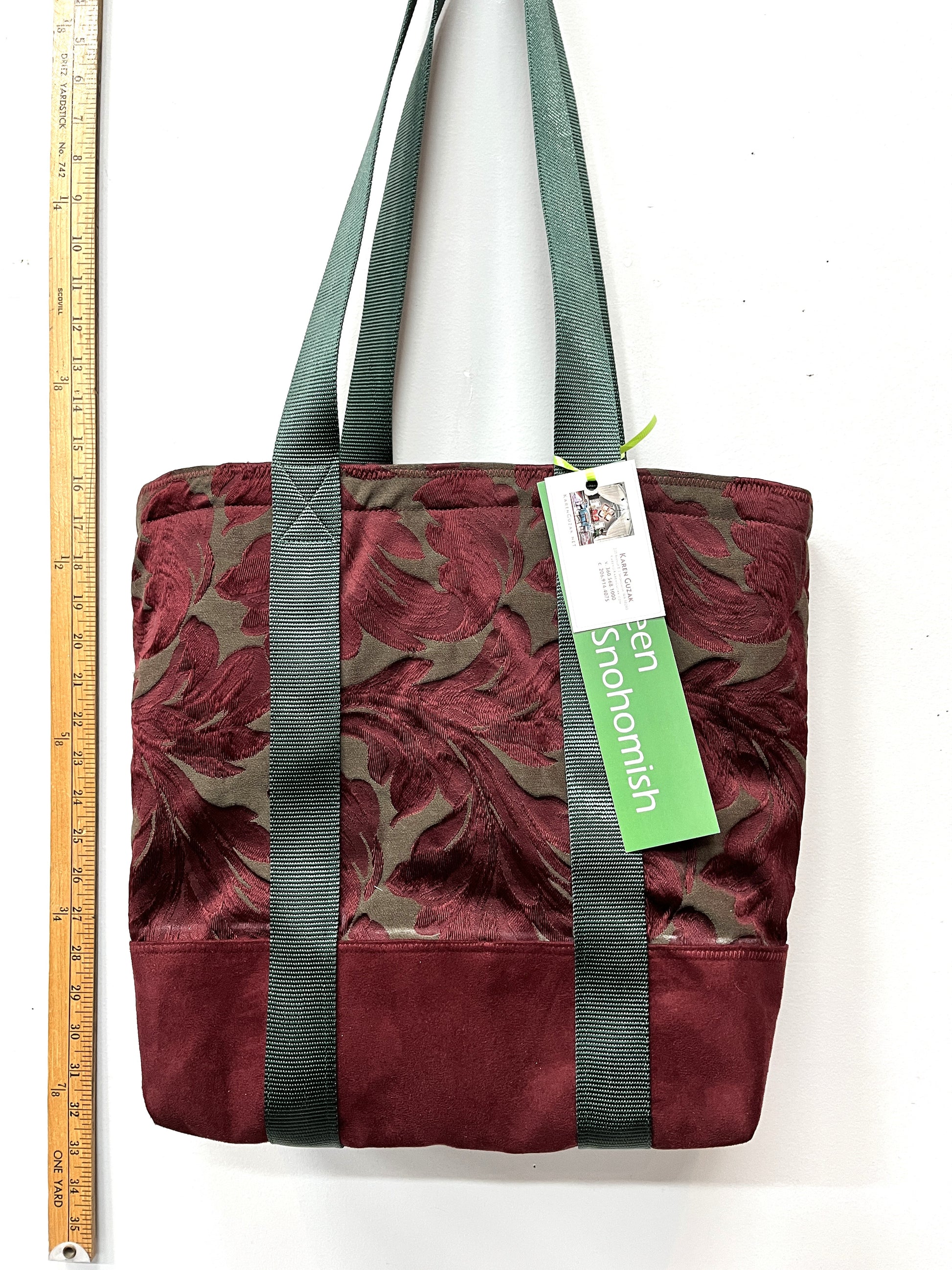Maroons and Greens Mixed Fabric Upcycled Tote Bag – Handmade Minimal Sustainable Carryall